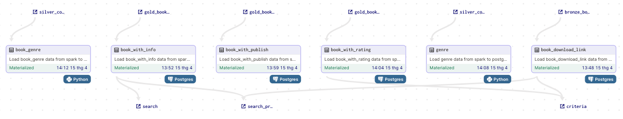 bookđể làm dependency cho asset liên quan tớigenre - silver_cleaned_genre: Tương tự