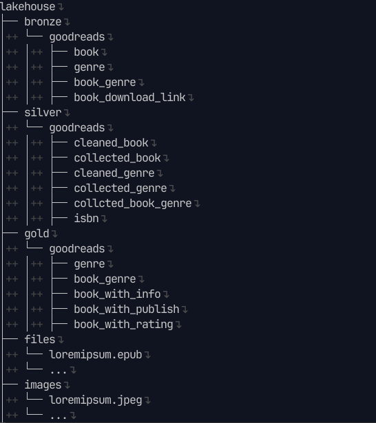 bronze_book, được partition để đảm bảospark standalone modecó thể chạy - silver_collected_book: Collect thêm missing data từ upstream như authors, pages number, description từ