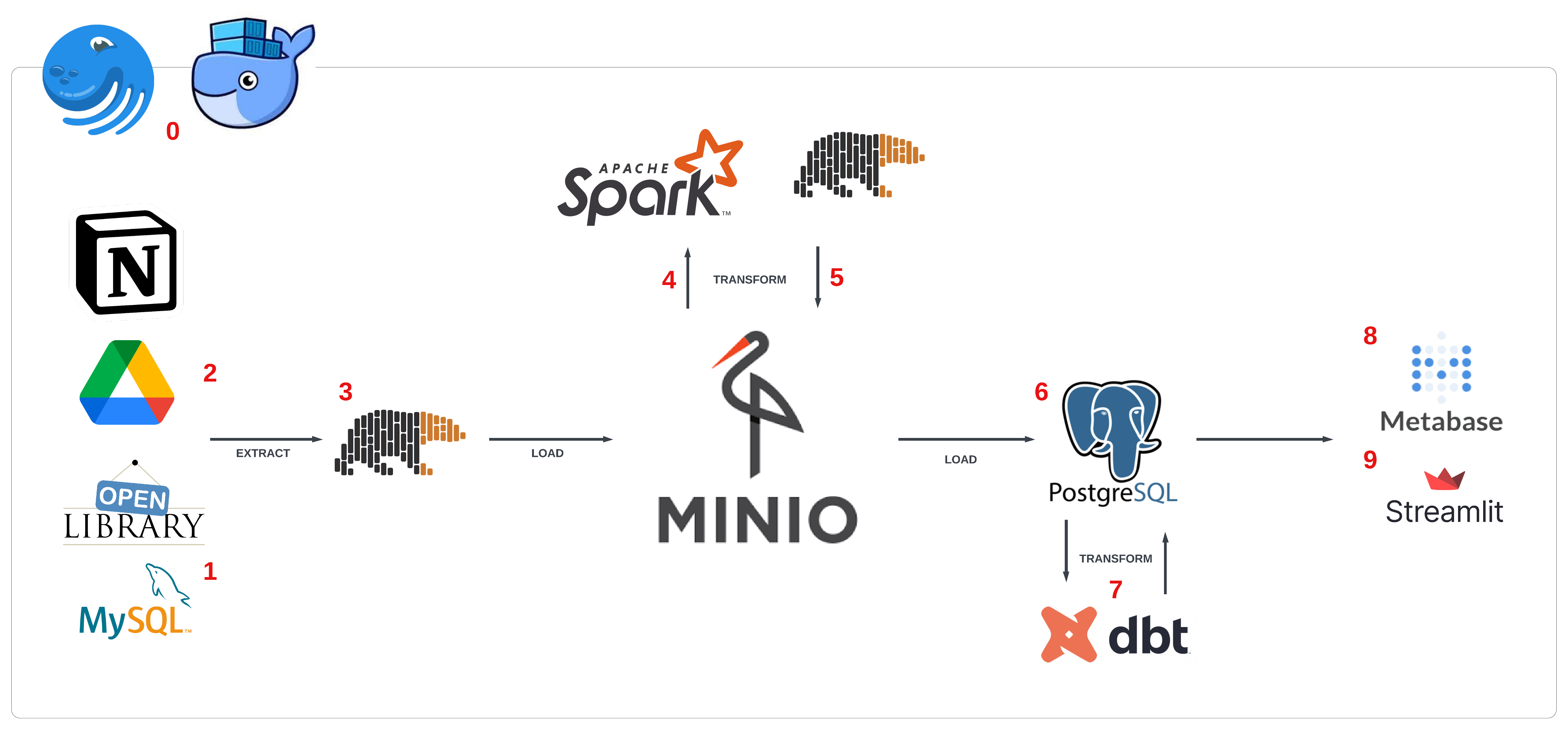 Trong project này mình sẽ hướng dẫn xây dựng một data pipeline cơ bản theo mô hình ELT (extract - load - transform), sử dụng bộ dữ liệu từ goodreads để ingest, transform data phục vụ hệ thống recommend sách cho bản thân.
