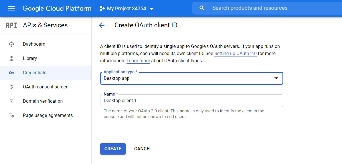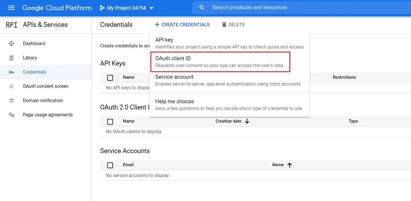 Đầu tiên chúng ta cần tạo một OAuth 2.0 token tới google, Google API Console.
