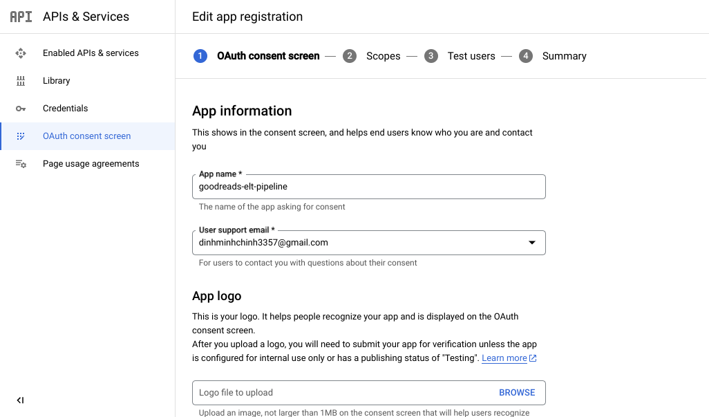 Tiếp theo, chọn tab OAuth consent screen,